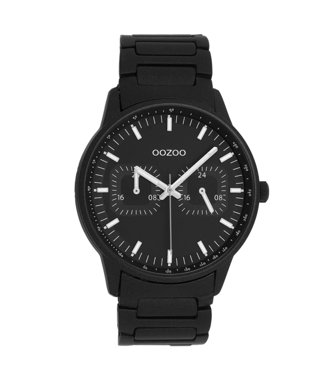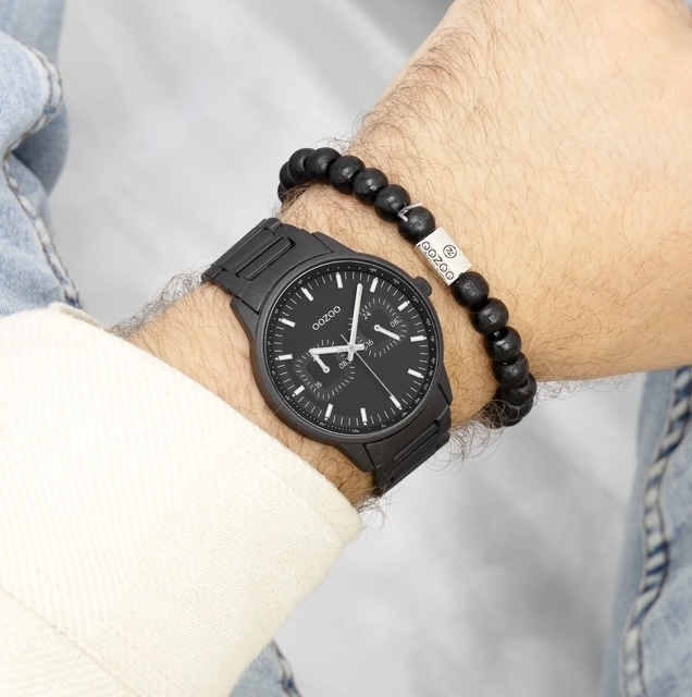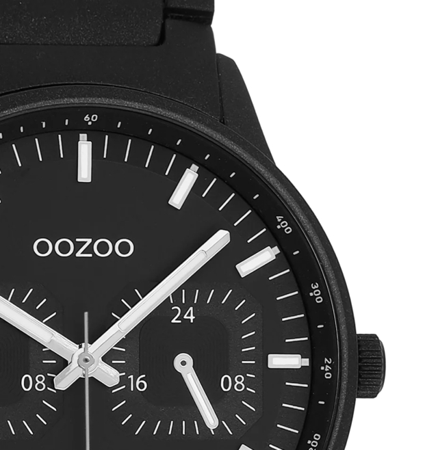 Val op met dit prachtige ronde herenhorloge uit de trendy OOZOO Timepieces-collectie. De C11624 heeft een matzwarte roestvrijstalen band en een 42 mm zwarte metalen horlogekast. Maak een echt fashion statement met deze zwarte chronograaf, zilverkleurige/witte streepjescijfers en bijpassende wijzers. Dit onmisbare horloge voor je garderobe heeft mineraalglas, een roestvrijstalen achterplaat en is nikkelbestendig. Dit horloge heeft een 2ATM Japans uurwerk.