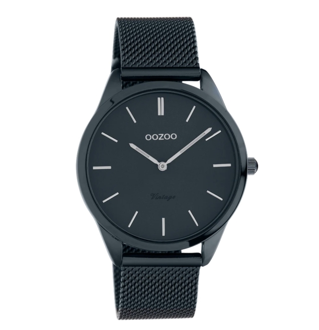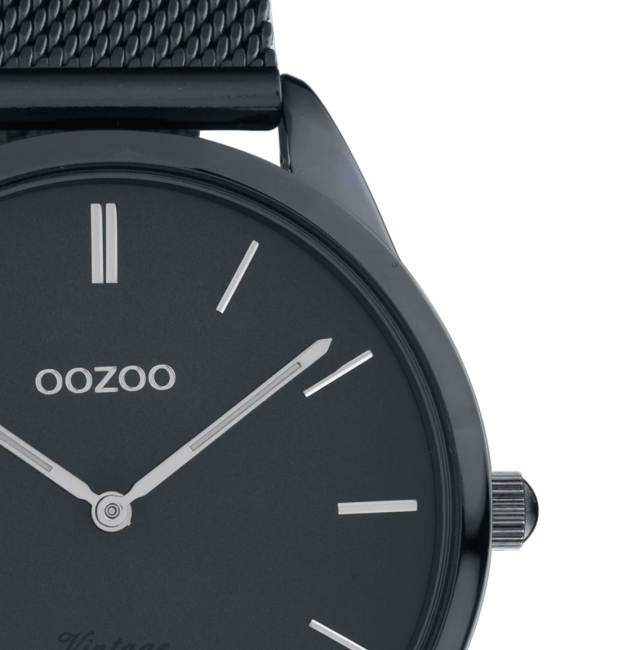 De klassieke look blijft centraal staan in deze trendy serie en daarom is dit ronde OOZOO vintage design met een speelse knipoog dé must-have van het seizoen! Dit unisex horloge is de perfecte combinatie van mode en comfort met zijn 38 mm nachtblauwe metalen horlogekast en nachtblauwe wijzerplaat met sunray. De nachtblauwe metalen mesh band maakt dit horloge een trendy accessoire, die je elke dag kunt dragen. De wijzerplaat heeft zilverkleurige streepjescijfers en bijpassende wijzers. De C20008 geeft je outfit een sprankeling. Het mineraalglas ligt in een 6,9 mm dunne metalen horlogekast met IP-coating. Dit design heeft een roestvrijstalen achterplaat en is nikkelvrij. Dit horloge heeft een 2ATM Japans uurwerk.