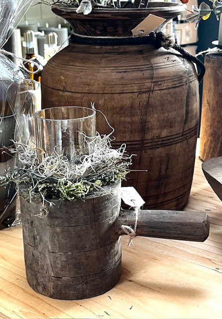 Mooie stoere kandelaar met decoratie en glazen windlichtje.