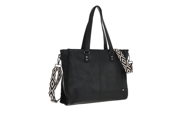 Met afmetingen van 43 cm bij 30 cm biedt deze tas meer dan genoeg ruimte voor alle dagelijkse benodigdheden. Het stevige rechthoekige model blijft stabiel staan en is makkelijk neer te zetten – handig voor onderweg of op kantoor. De tas is bovenaan volledig afsluitbaar met een rits. Binnenin vind je een extra ritsvak en twee insteekvakken, voor een overzichtelijke indeling van kleinere items.