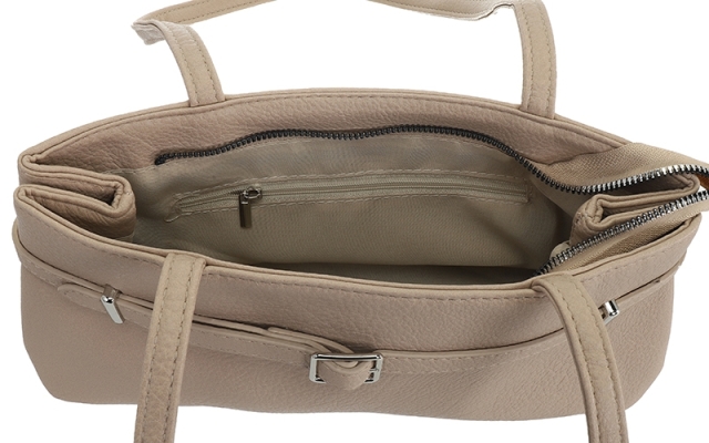 Opvallend Detail: De voorkant is subtiel afgewerkt met een elegant, decoratief riempje en een zilverkleurige gesp, wat de tas direct een verfijnde look geeft.