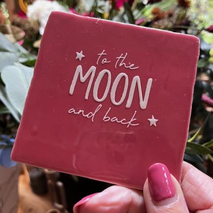 Tegeltje To the Moon roze wit