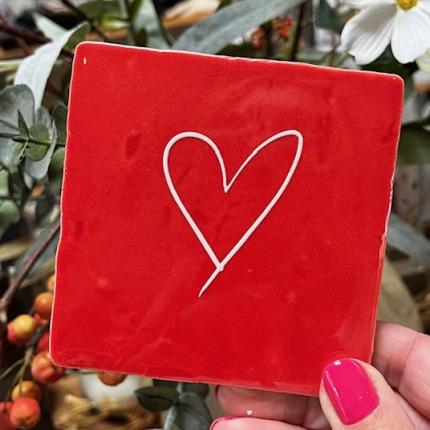 Tegeltje hart rood creme